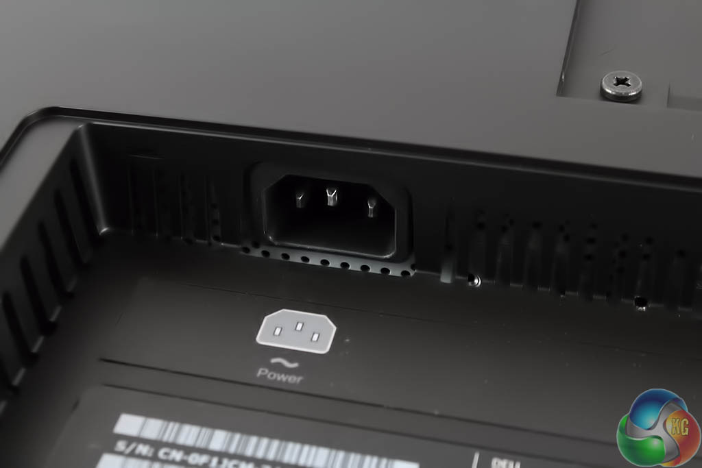 As is standard with all Dell displays, there’s a big circular logo at the back, one in the middle of the lower bezel at the front, and a Harman/Kardon logo on the left edge, advertising the inclusion of technology from this speaker brand.