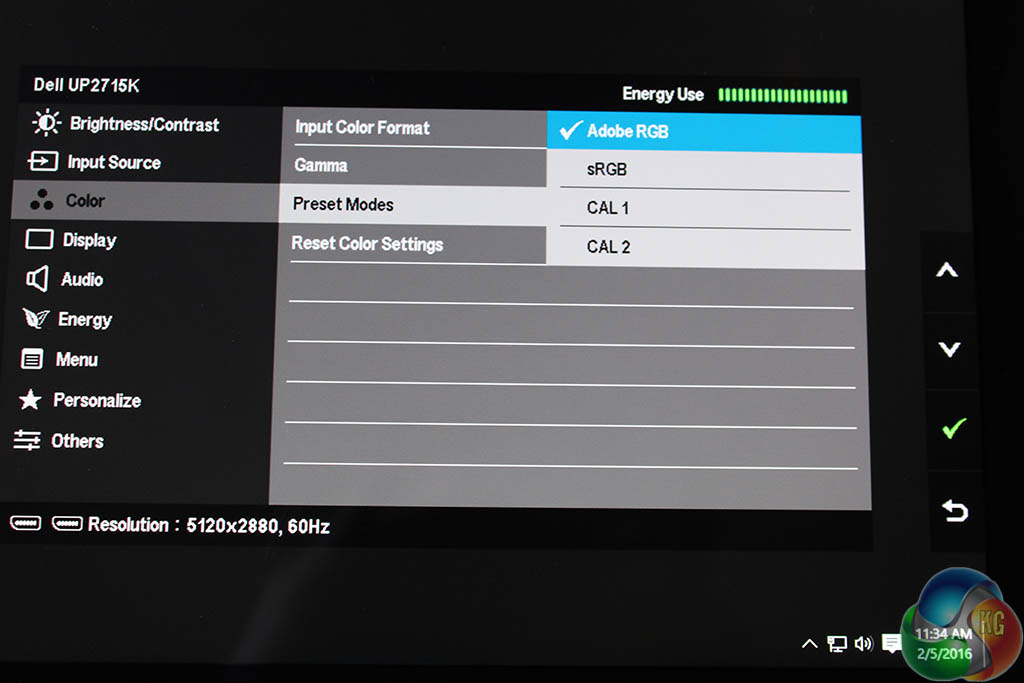 And likewise if you expand the ‘Color Space’ option you can choose between calibrations, with sRGB and AdobeRGB listed, along with CAL 1 and CAL 2 for user customisation.