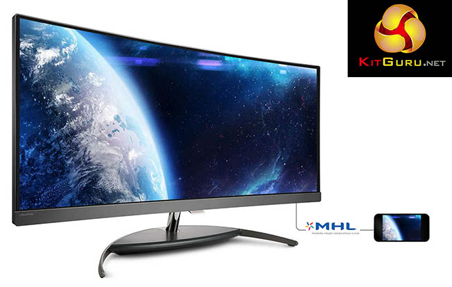 The curvature of the Philips Brilliance BDM3490UC is rated as 3800R, so the full circle would have a radius of 3.8 metres. If the angle of the curve was greater, or the screen was less wide, a smaller circle would be formed. So higher numbers mean less curvature, and lower numbers mean a sharper angle. Most displays use a curvature that hovers around this 3800R figure, but not all.