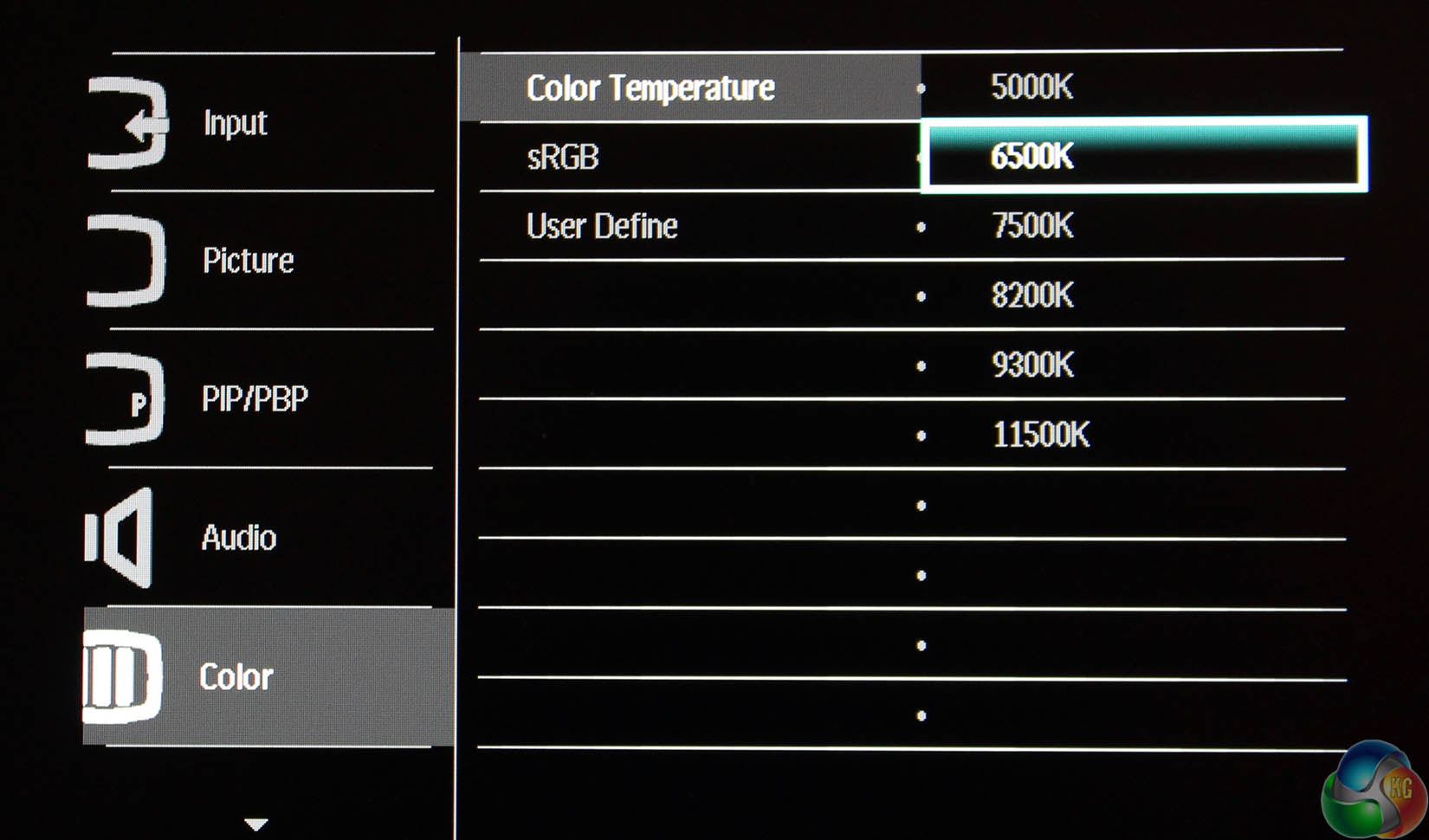 The Color menu lets you switch the temperature from values ranging from 5000K to 11500K.