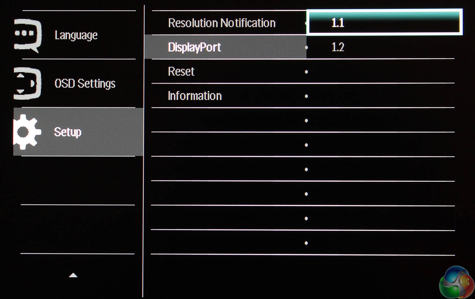 Setting it to 1.2 should be the first thing you do. We questioned why any manufacturer would leave DisplayPort 1.1 as the default option these days, but according to Philips this is to maintain support for older video cards.