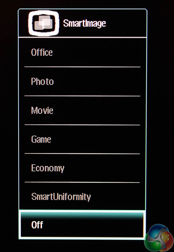 Beneath this is the Picture menu, with brightness, contrast and sharpness controls. The aforementioned Picture Format control is here to force a 4:3, 16:9 or 21:9 screen format. There’s also a gamma setting with values ranging from 1.8 to 2.6 along with SmartResponse and SmartContrast.