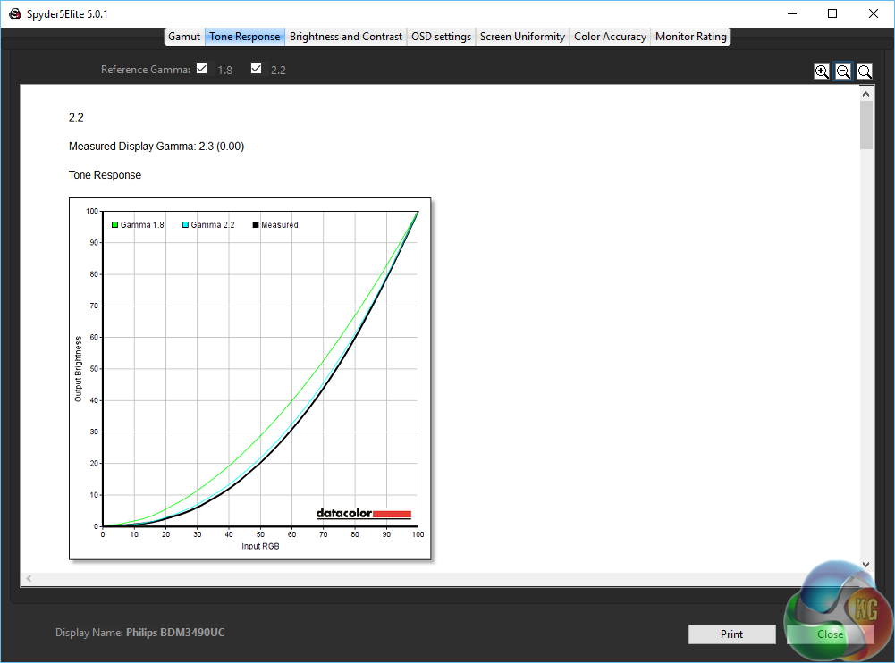 As an (effective) 10-bit panel the Philips Brilliance BDM3490UC achieves great colour accuracy, with a Delta E under 1. An excellent result.