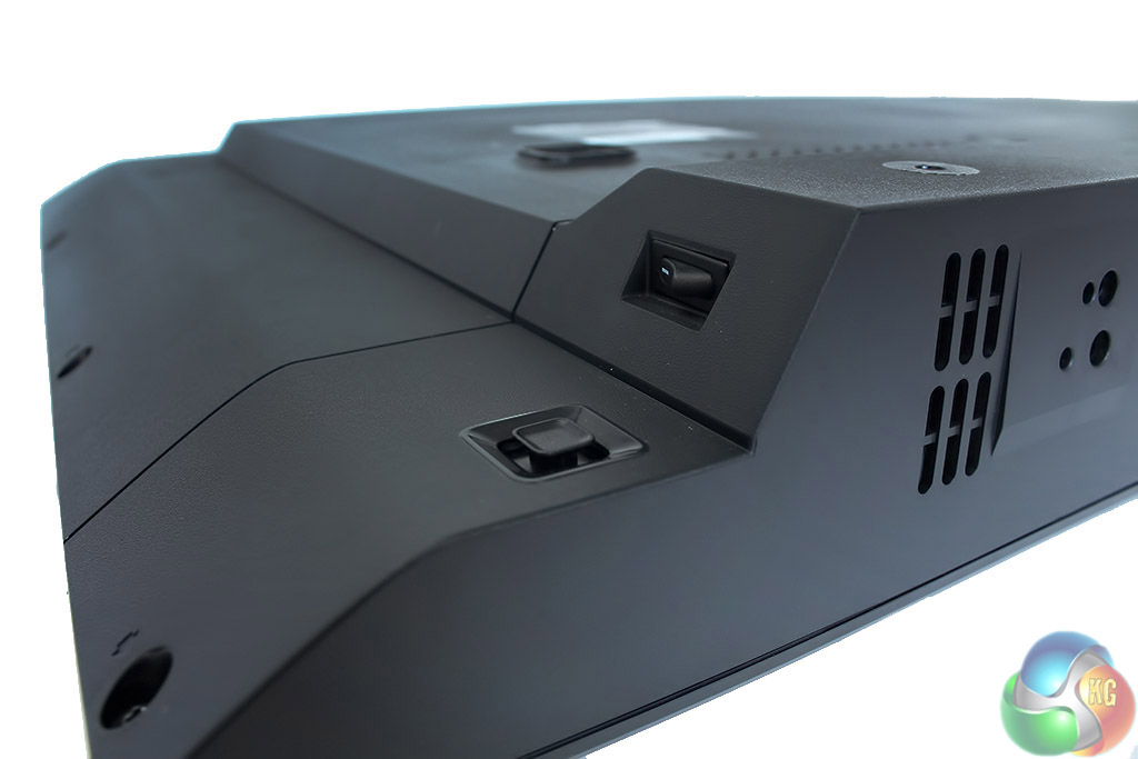 On the back of the screen, there’s a four-port USB 3 hub, with an uplink. The standard IEC (kettle) power lead fixes right to the back of the display rather than underneath it.