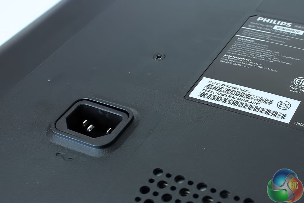 On the back of the display are some VESA holes, so you can attach your own mounting bracket, or fix the screen to a wall. This might be very useful, if you wish to adjust the screen’s position when in use, but a good mounting bracket that can handle a 40-inch screen will mean a considerable extra outlay.