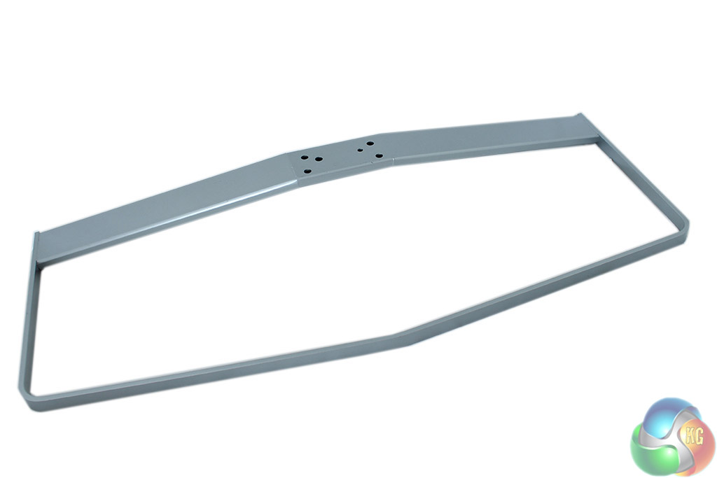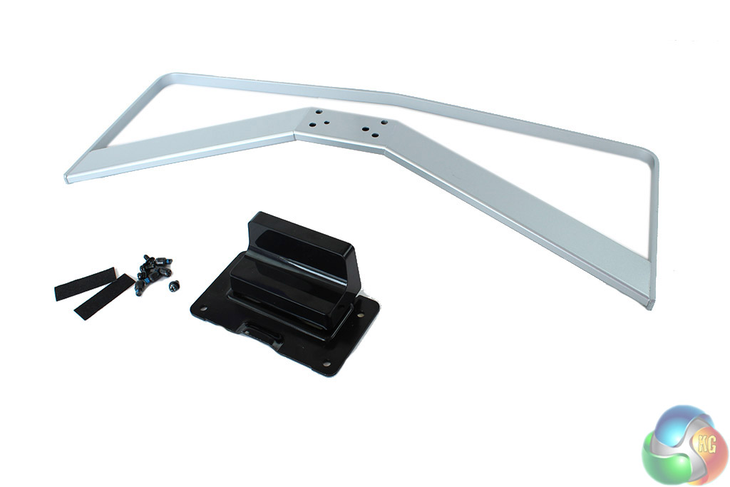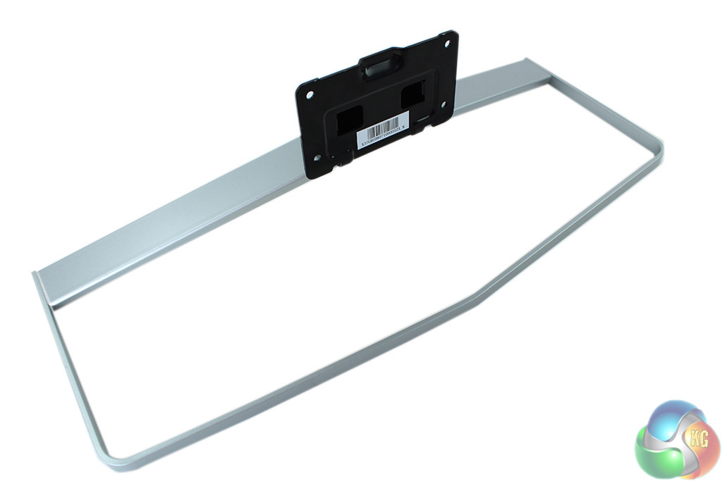 The stand comes in two parts. There’s a long silver-coloured metal base and a chunky black metal support section.