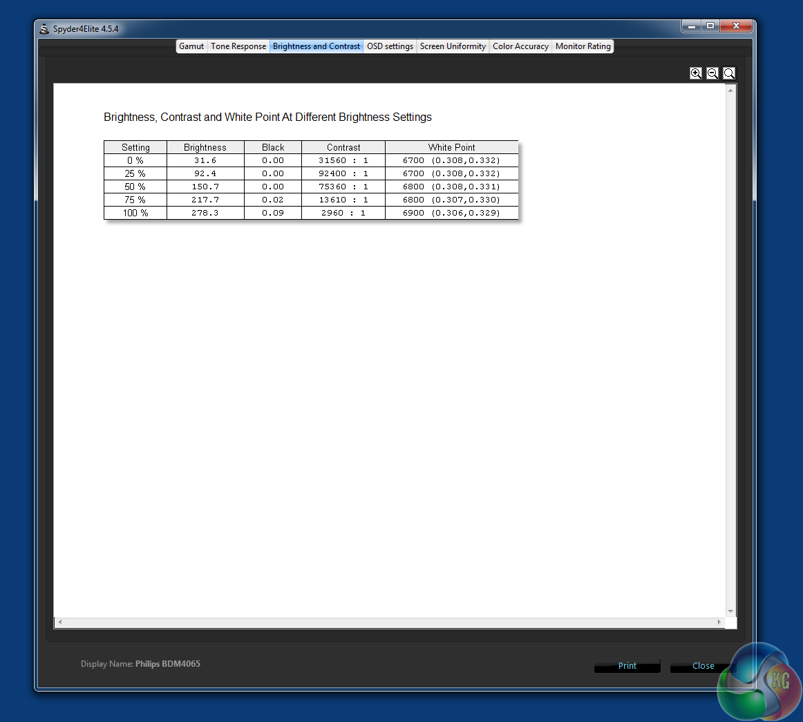 For testing we used a Spyder 4 Elite Colorimeter, with all the settings on the BDM4065 reset to default. The SmartImage preset was set to off and sRGB was disabled. Gamma was set to 2.2 and colour temperature to 6500K.