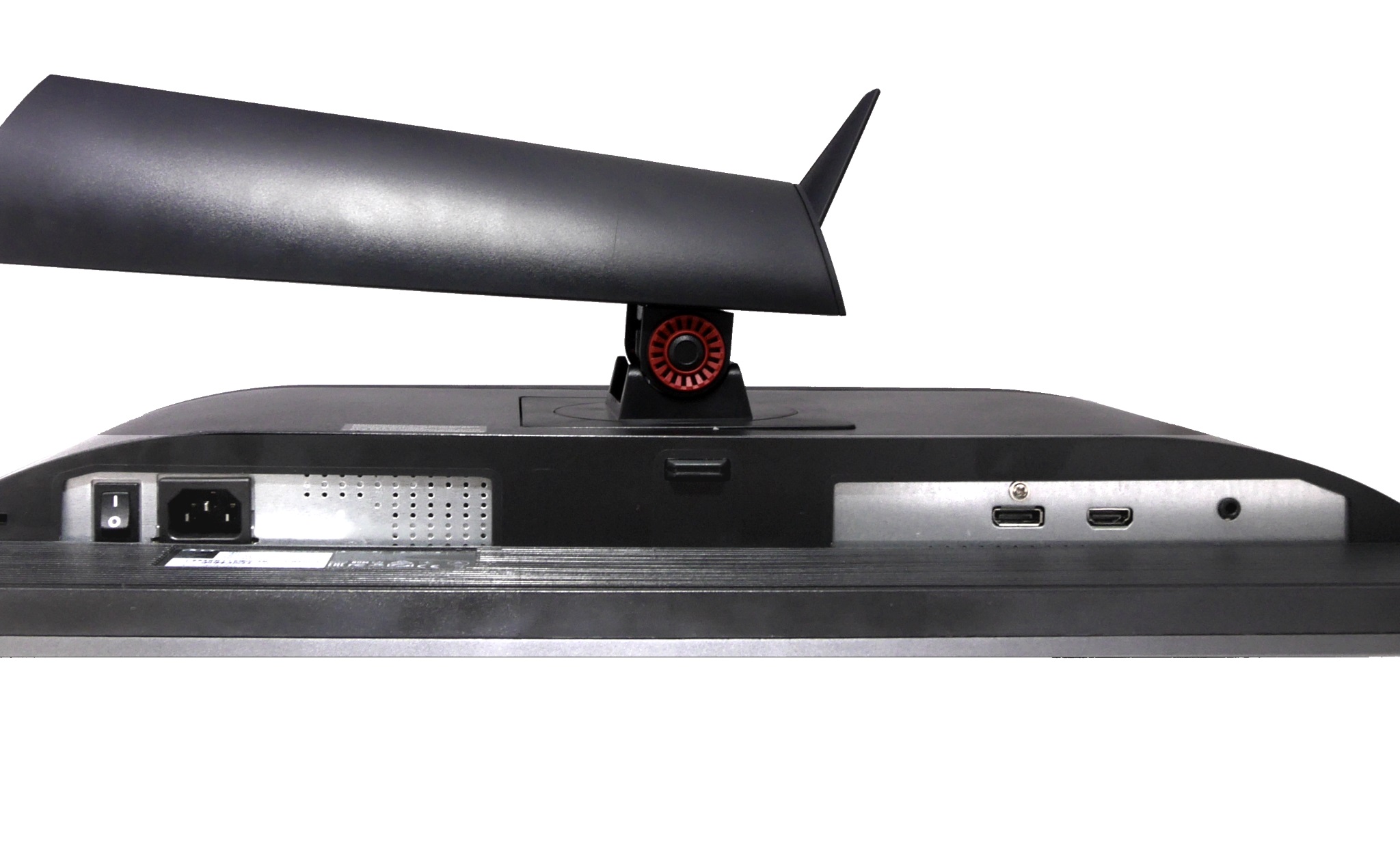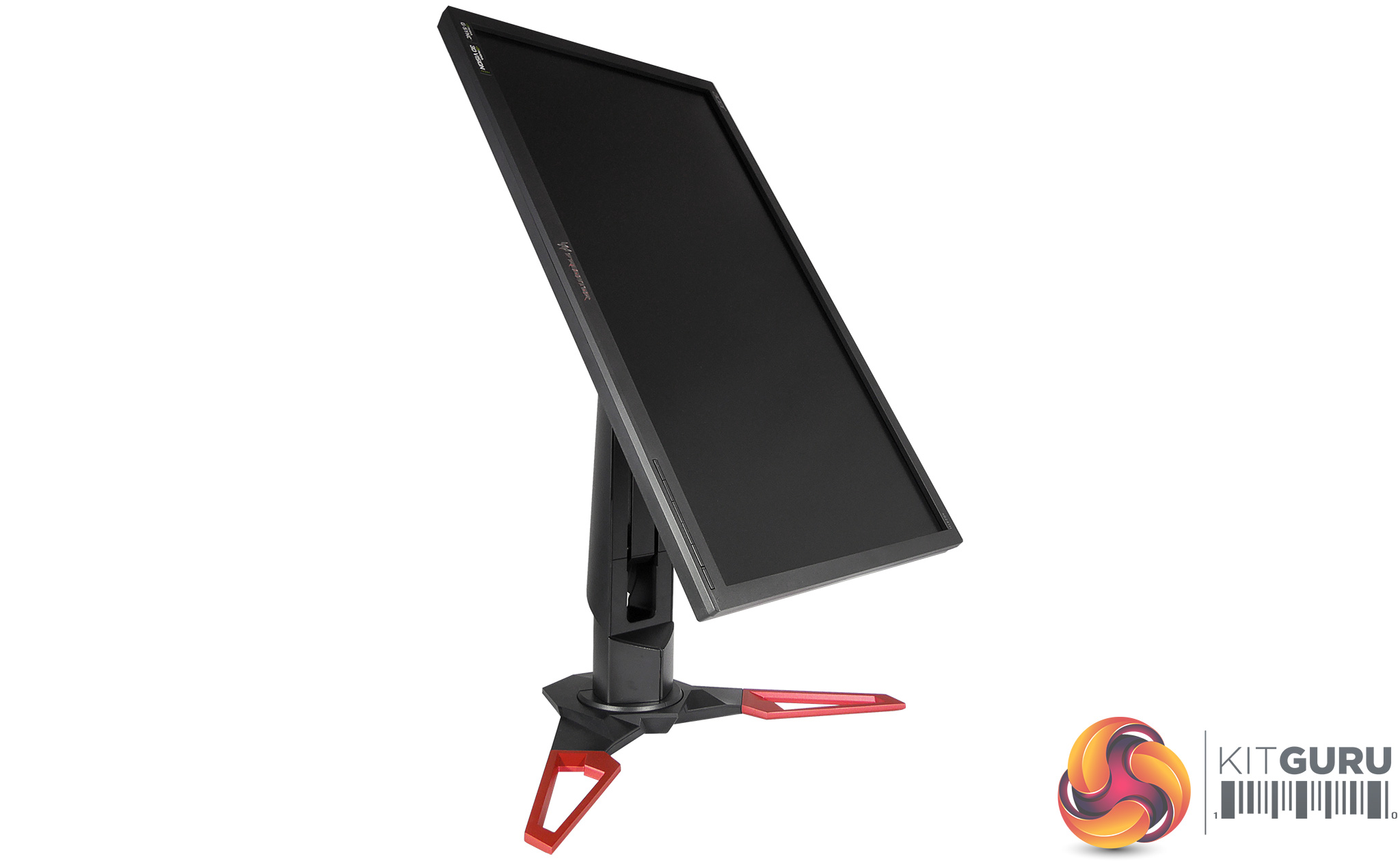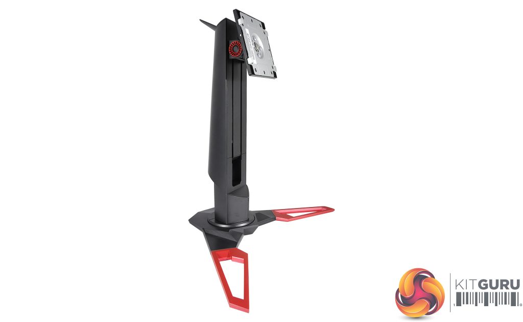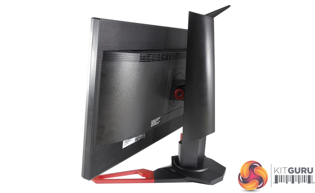 While the monitor’s chassis is pretty plain, which we’re not complaining about, the stand is where those Predator design touches shine through. Looking around the back you’ll be able to see its attractive curves and angles, along with a red ring pattern to either side of the tilt hinge that evokes a radial hubcap.