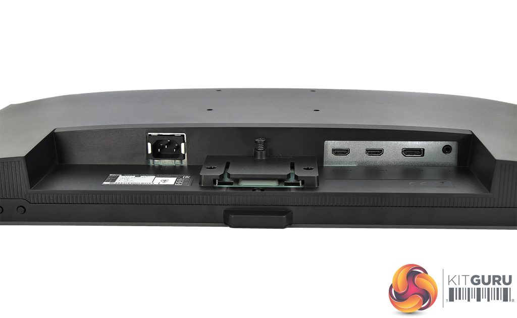 For audio duties there’s a single 3.5mm headphone jack to supplement the integrated speakers. Finally on the left we have the power input in the form of a standard kettle lead, a far preferable option to the external PSUs of many slimmer displays.