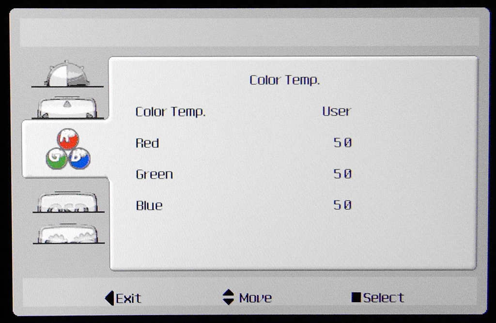 Getting to the next main tab on the OSD, Image Setup controls the display’s aspect ratio and… FreeSync. Again, not the most intuitive place to find it; under Overdrive on the previous tab would have made more sense. Next up on the tab list is Color Temp, which contains the usual presets like User, Cool, Normal, Warm and… sRGB. Interestingly, in our measurements using the sRGB setting actually lowered the sRGB coverage, so it might be best avoided.