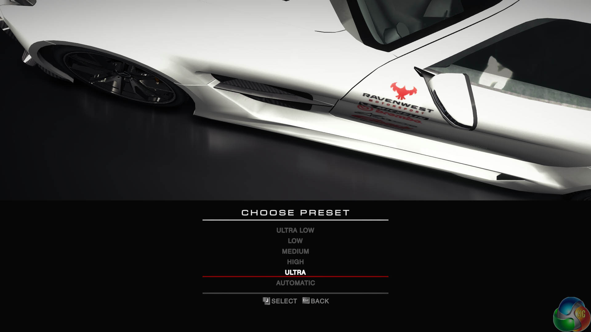At both ‘HIGH' and ‘ULTRA' presets, the engine runs very smoothly. Many people complain when a racing engine drops below 60 frames per second however there is no such concern with an overclocked GTX780Ti running at 1080p. Frame rates held above 100 at all times, at both image quality settings. There is no doubt at the high image quality setting, the frame rate held closer to the maximum 144hz, but to the naked eye it would be difficult to notice a difference.
