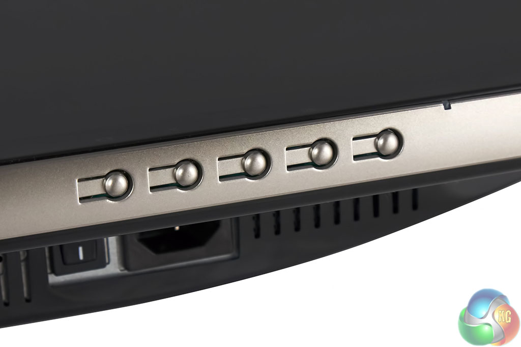 … the picture above was taken with the screen laying on its back. These are the physical buttons which operate the onscreen menu system. From left to right: Switch input, move left, move right, menu on/off/accept, power off/on.