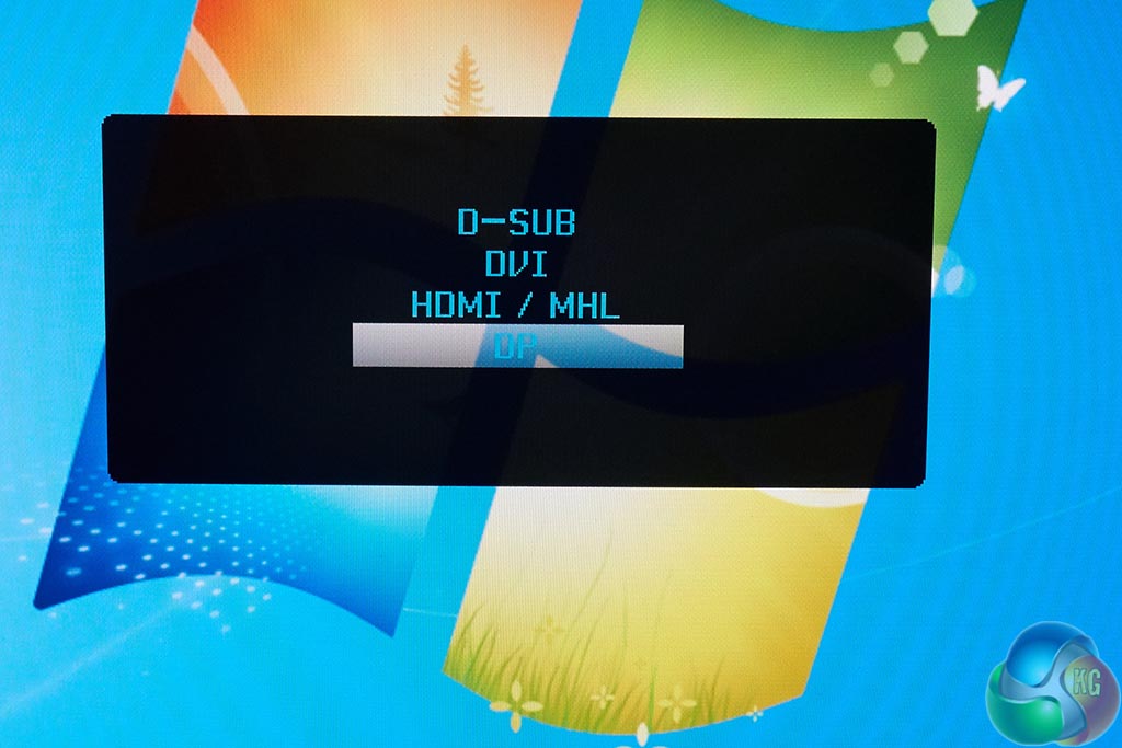 The input button calls up a simple menu to toggle between the four input connectors. We are using DisplayPort for all our testing today.