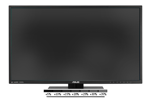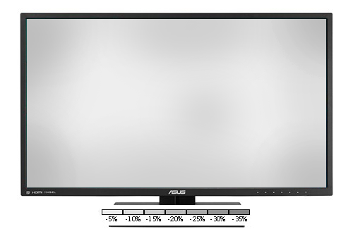 Black Definition rates as above average. We recorded light leakage across the full width of the screen, at best +5% in central positions, and at worst +20% at extreme edges. In real world situations this was not too noticeable, however if you watch a lot of high definition movies featuring space scenes then areas can appear dark grey rather than ‘pitch black'. The default brightness setting exacerbates this problem as ASUS are using a default brightness setting of 90 percent. Dropping brightness to 40 or below negates the issue somewhat.