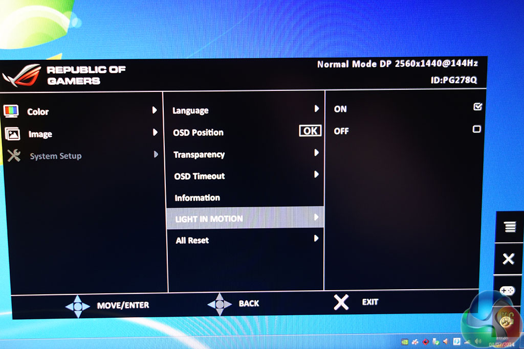 Asus have integrated the interface panel on the side of the screen. This is angled, so it isn't directly on the back of the screen. This is one of the best menu interface systems we have seen to date.
