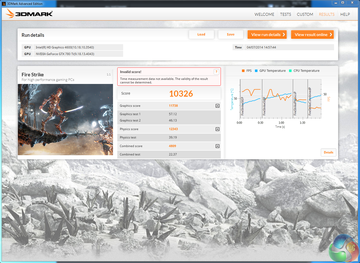 We are using our new KitGuru Test rig, built to our specifications by DINOPC. You can see the hardware breakdown of this system over HERE. When partnered up with the ASUS graphics card, the system scores 10,326 points in the latest version of 3DMark. The card itself scores 11,738 points in the graphics test – which gives a good indication of the power on tap.