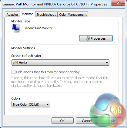 A double check of the Windows display options, highlighted that 144hertz was enabled by default. We only tested today at the 144hz setting in 2D. Our 3D Vision glasses stopped working just before we started to test the screen and we have been unable to get a replacement pair in time. The first game we decided to test with was the latest version of Tomb Raider – a great game both to play and look at. For the purposes of this specific article we used the built in game benchmark. Remember we want to try and get a constant frame rate of 144 fps to match the maximum 144hz of the screen. This is not going to be easy at 1440p., even with an overclocked GTX780Ti. An advantage to G-Sync is that obviously you still get smooth, tear-free gaming at any frame rate. It is worth pointing out that thanks to Nvidia G-SYNC – there is no stuttering evident when the frame rate drops. We did test with some games that fluctuated between 120 frames per second and 60 frames per second. There was no indication of visible and distracting ‘tearing'. Incidentally you can still use the Asus ROG Swift PG278Q with AMD video cards, but G-SYNC is not supported.