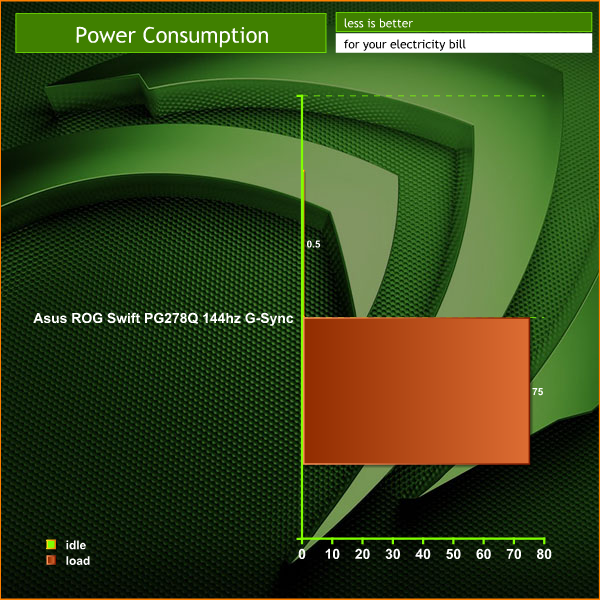 The Asus ROG Swift PG278Q 144hz G-Sync demanded around 75 watts of power after we calibrated it.