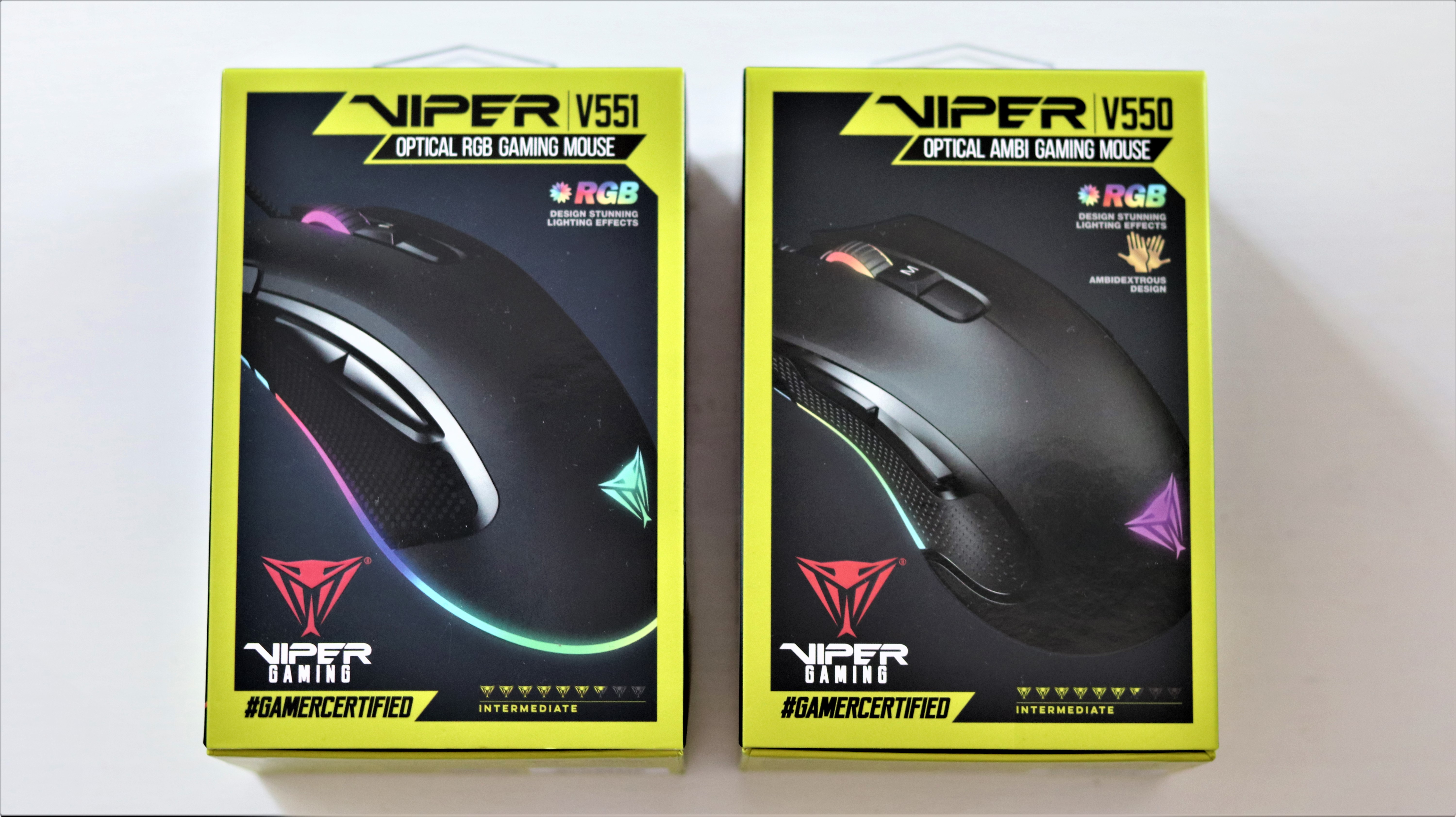 Today we've got two mice going head to head! Patriot released their Viper Gaming range back in 2015 with a variety of low, mid & high-end peripherals. Let's take a look at their intermediate mice range. The V550, which is an ambidextrous mouse, and the V551 that's designed for the right-handed user. Packed with features are they worth £34.99? Which one would be best suited to you?
