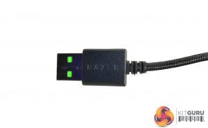 All of the relevant product information can be found on the underside of the mouse, surrounding the 6,400 DPI sensor. The black coated cable is the same premium quality found on all of Razer’s modern peripherals, with a branded USB connector sporting the company’s font and colour.