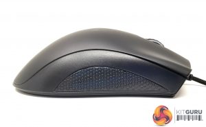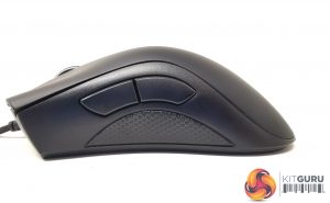 Razer takes a minimalistic approach to the DeathAdder Essential with little on the right hand side apart from a rubber pinky grip. The same textured padding is on the left side of the mouse, located below the chunky back and forward buttons.
