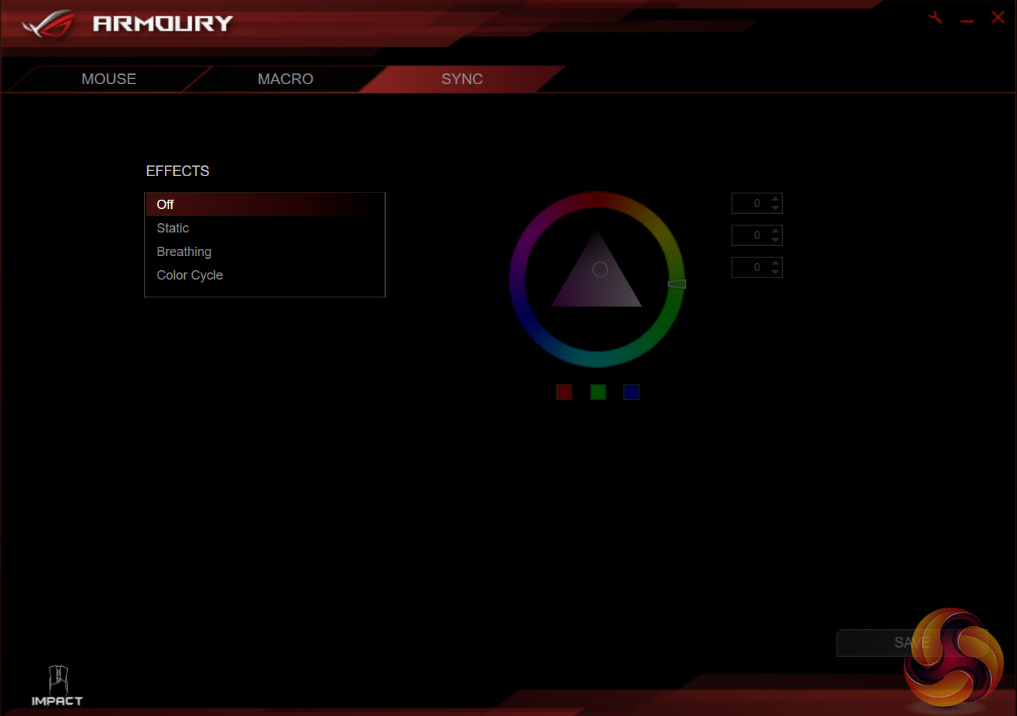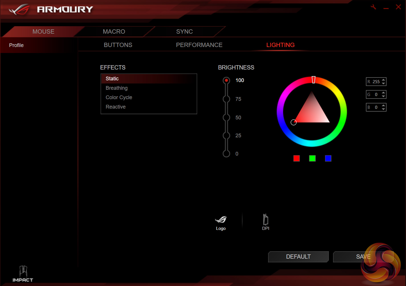 As with the Gladius II, though, Armoury only lets you set 2 DPI stages, which is quite frustrating for me. This is a slightly cheaper mouse, though, with a different target audience, so it is less of a problem for the Impact than it was for the Gladius II, but it is still annoying.