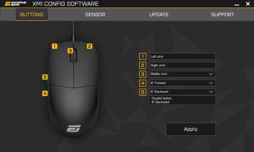 The ‘update' tab simply searches for updates to the mouse's firmware, and clicking the software update button just takes you to Endgame Gear's downloads page, so there is clearly no software update function built within the software itself. Lastly, the ‘support' tab provides a link to the XM1 FAQ and an email address for customer support.