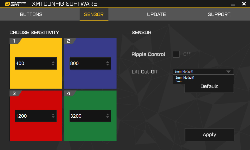 Clearly, the software leaves a lot to be desired, and it definitely shows that this is Endgame Gear's first mouse. It is a good thing that there is at least an easy way to adjust LOD and DPI stages, but that is pretty much it – so anyone looking for anything more sophisticated is going to be disappointed.