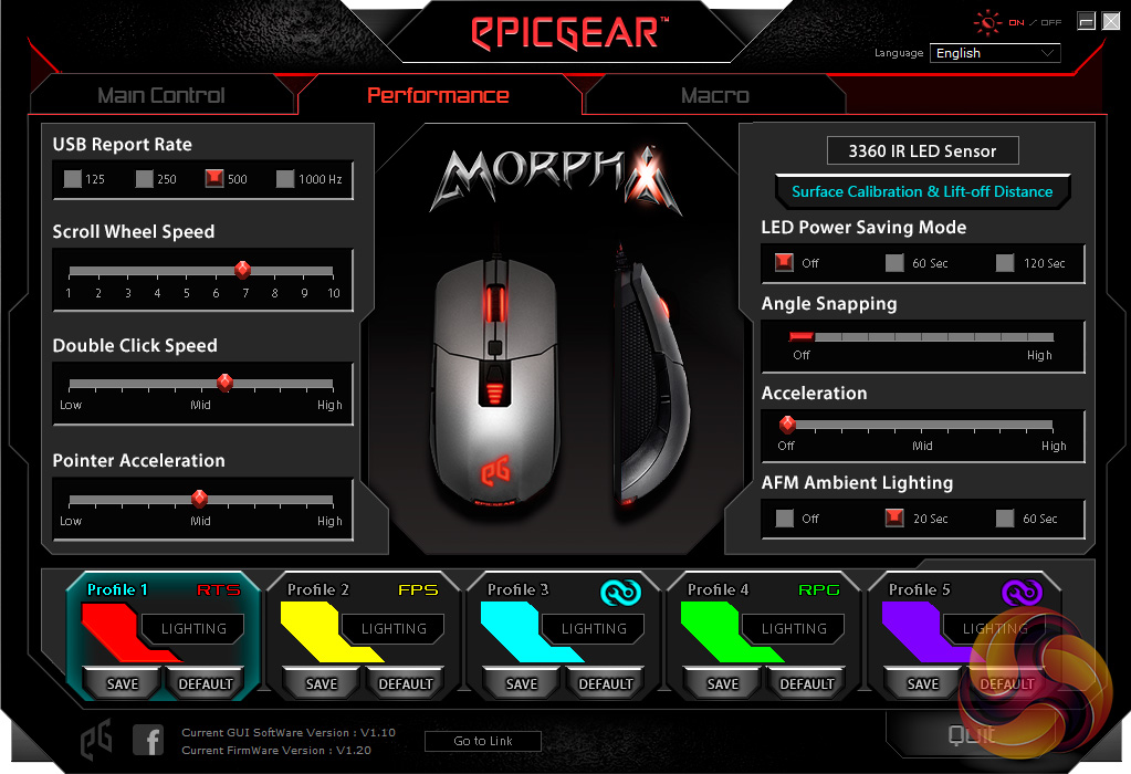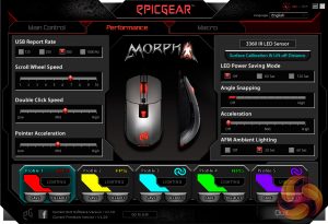 The Morpha X's lighting is also adjustable, but it is disappointing to see a lack of any lighting effects. As far as I can tell, users can only set one static colour, but the mouse is still RGB-capable so it can be any colour you wish.