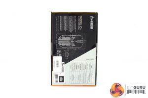On the back, various specs and key features of the mouse – including dimensions, premium mouse feet and Ascended Cord – are highlighted.