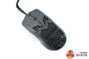 Now, as for the mouse itself, it is clearly an eye-catching design with plenty hexagonal holes cut into the mouse's shell. Compared to the Model O, the Model O- is essentially the same exact shape, but just scaled down, meaning it has a very similar shape to the Zowie FK2, but the Model O- is even smaller.