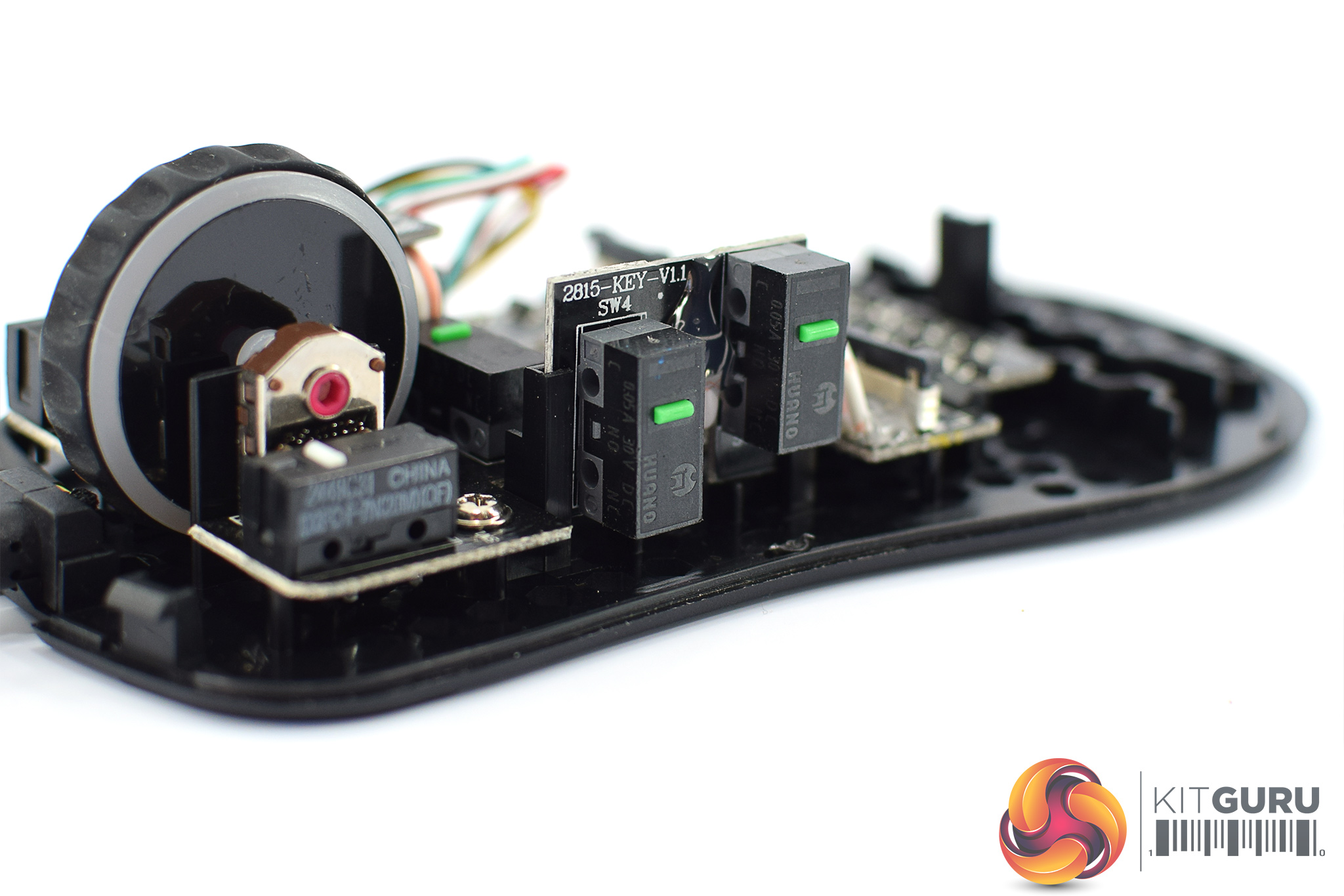 At the top of the mouse, the primary buttons used are Omron D2FC-F-7N(20M) switches, rated at 20m clicks.