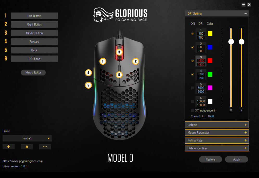 Overall, this isn't as polished an experience as you'd get from Razer Synapse or Corsair iCUE, but the fundamentals are there with DPI and LOD options. On top of that, the Model O does have on-board memory so the software can be used once and then uninstalled if you'd rather not have it on your PC.