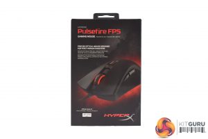 The HyperX Pulsefire FPS ships in a familiar-looking box, complete with HyperX's signature black-and-red colour scheme.