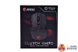The MSI Clutch GM70 ships in a black box with a large photo of the mouse on the front.