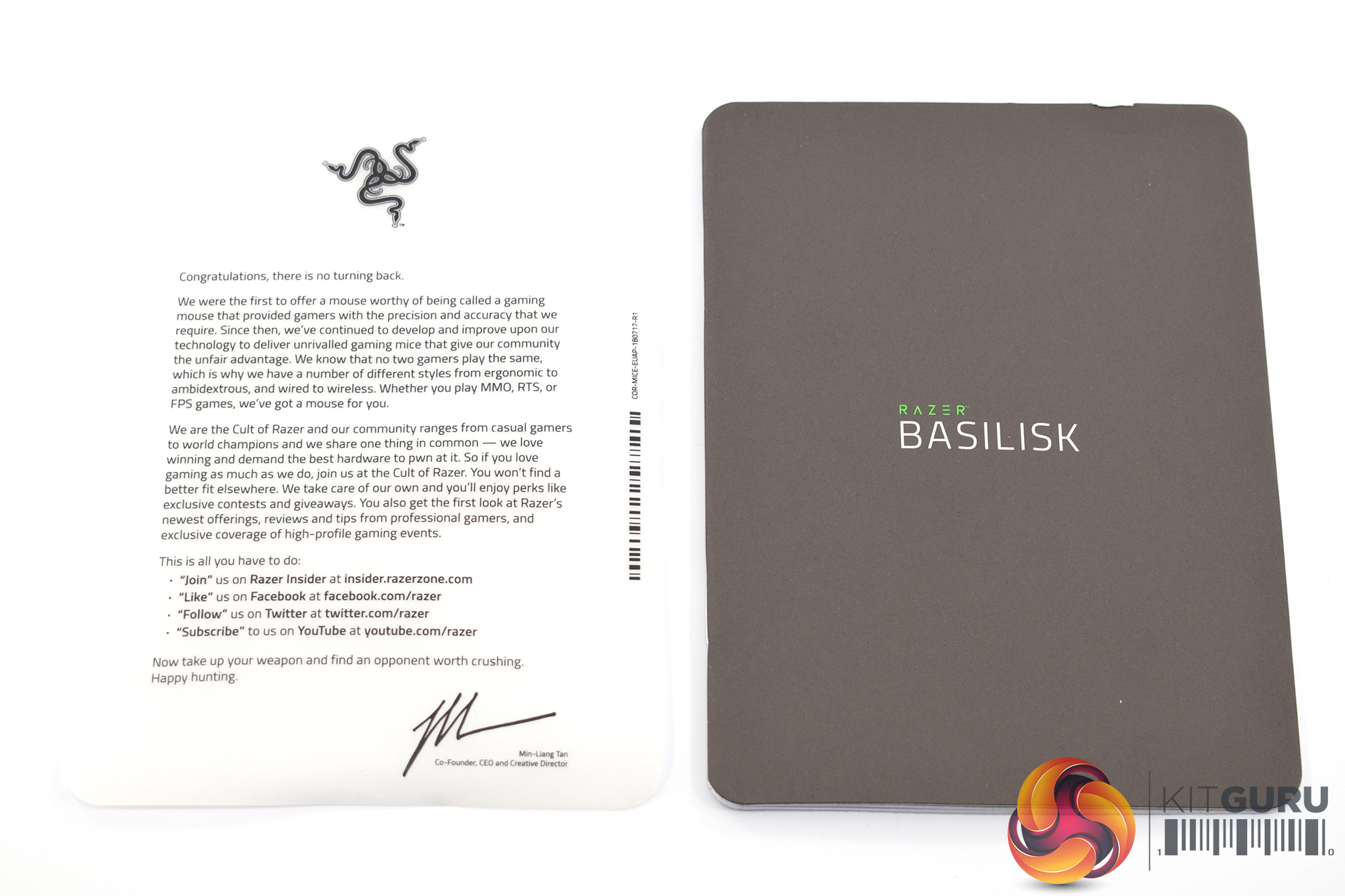 Inside, a Razer greeting card is included, as well as a quick-start guide.