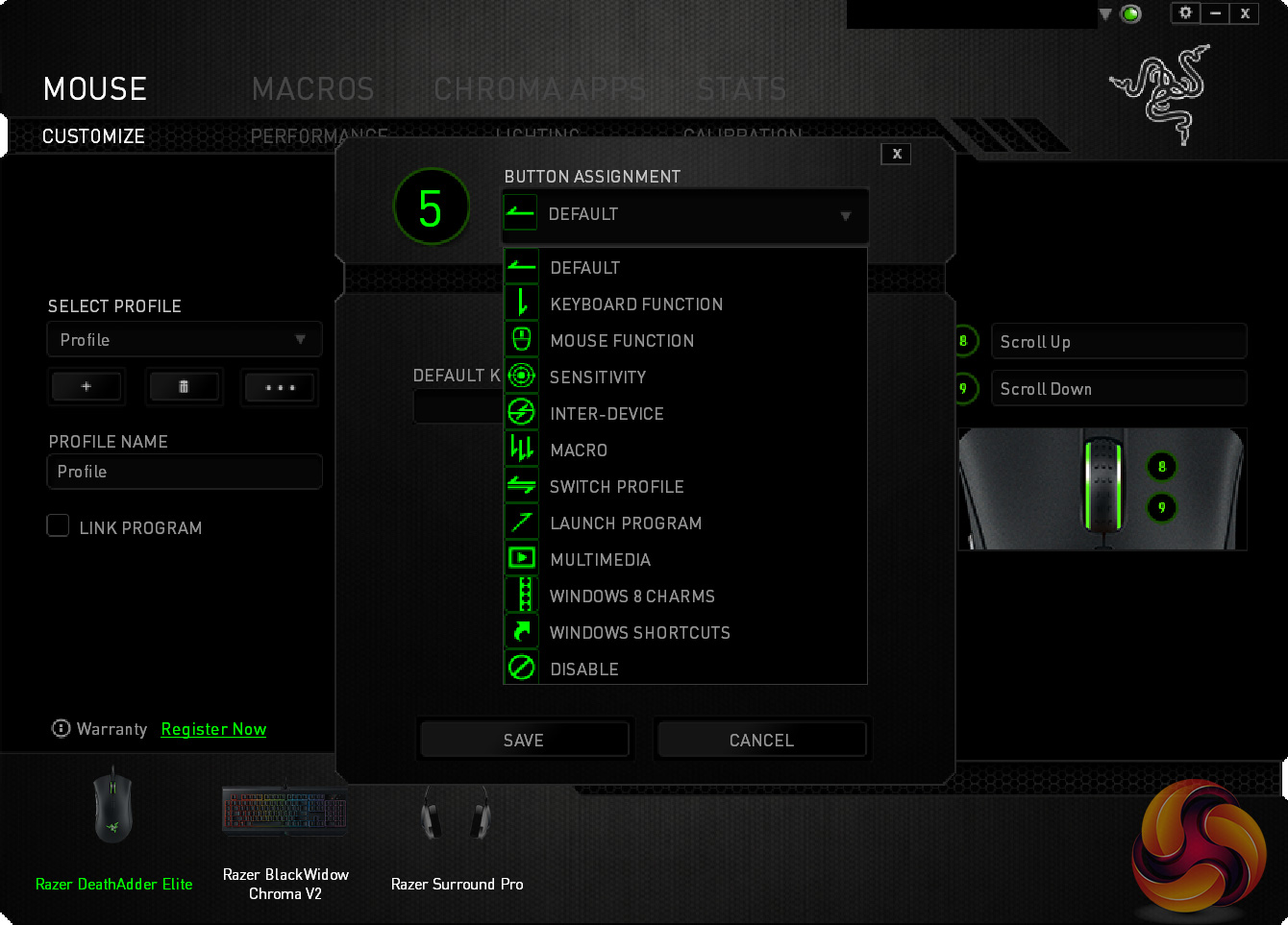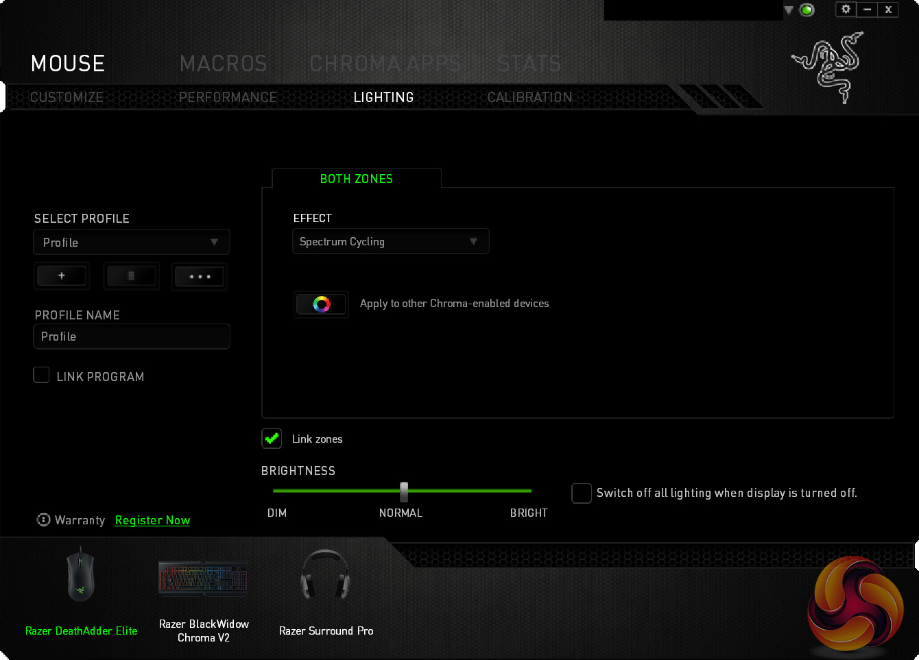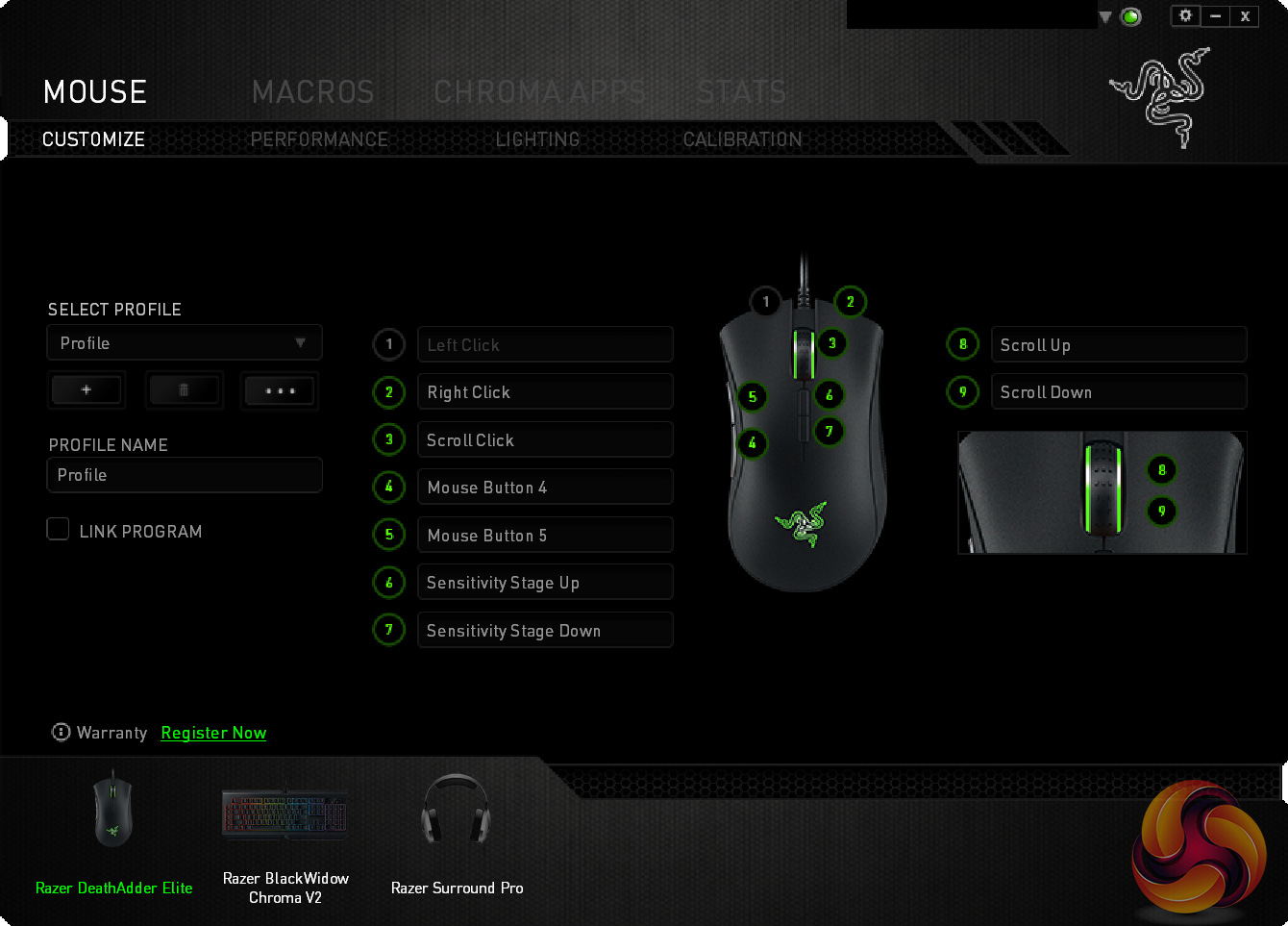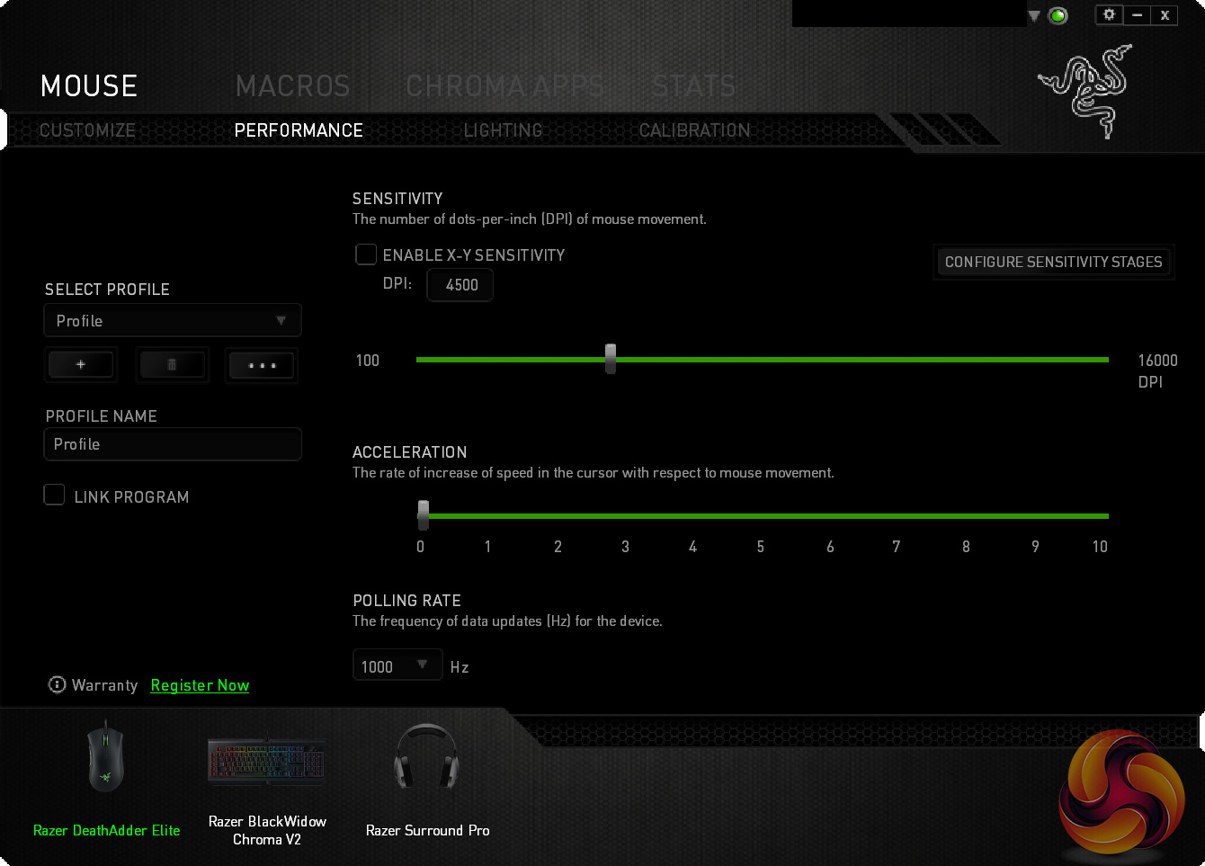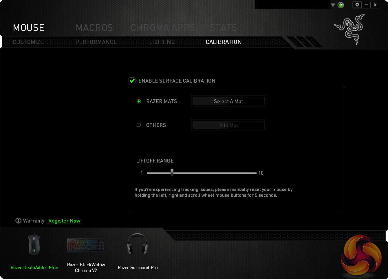 In my opinion, it is really the complete package. For the DeathAdder Elite, it gives you control over button re-assignment, DPI stages and lighting as you would expect, but it also offers extra functionality many other software suites lack. For example, you can calibrate the mouse to the particular mousemat you are using – choosing from one of many pre-configured Razer mats, or calibrating the mouse manually.