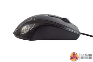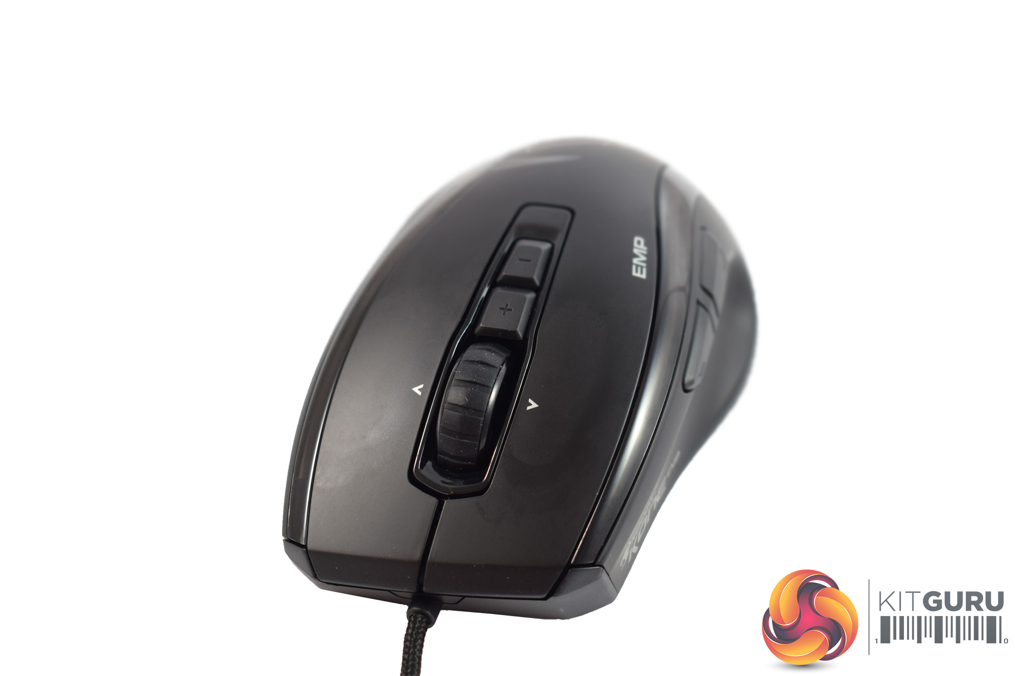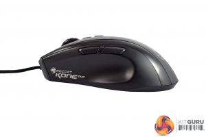 The Kone EMP itself keeps the familiar shape we have seen from plenty of other Kone-series mice. This means it is a fairly large, ergonomic shape, so it is only for right-handers.