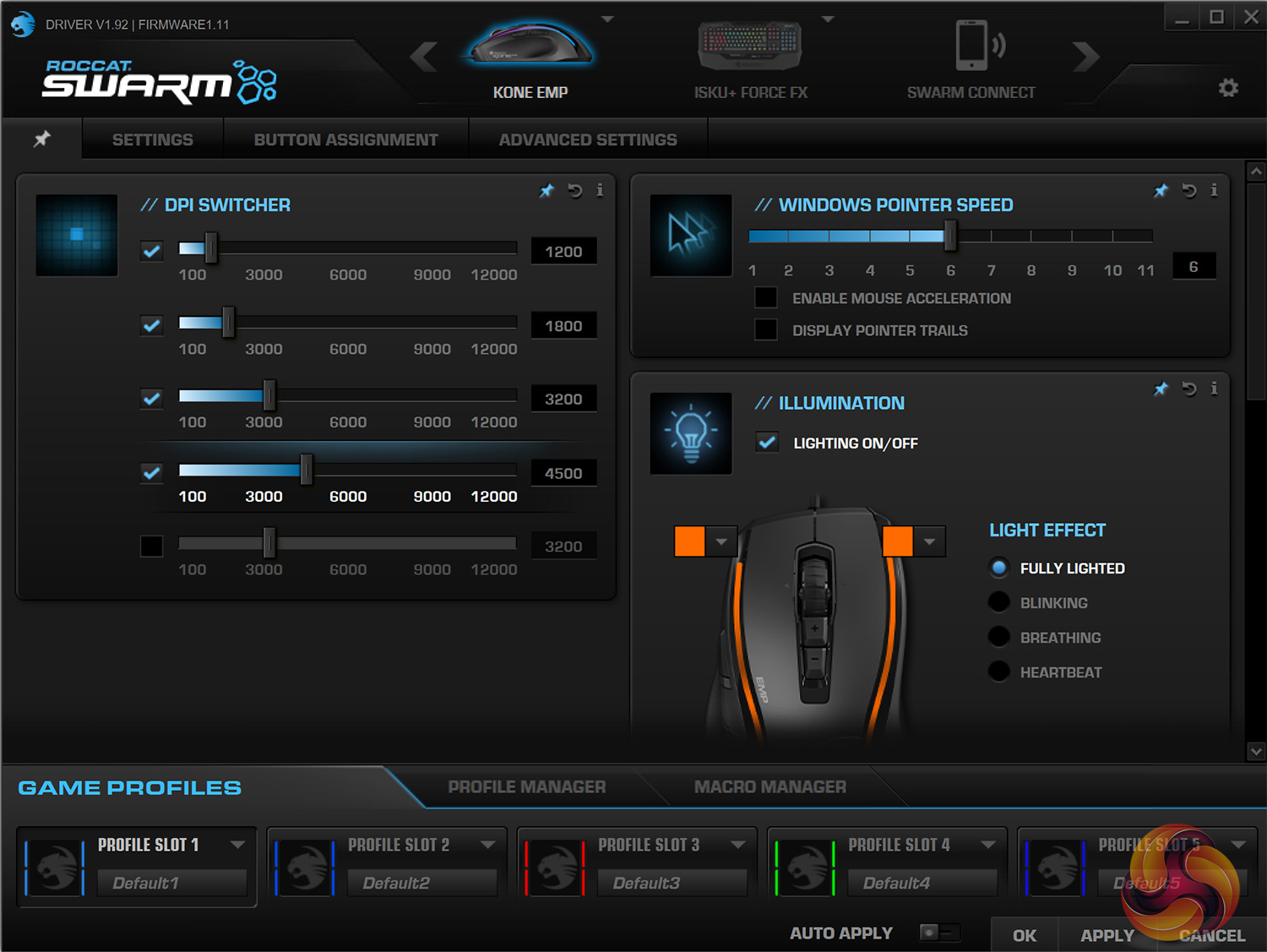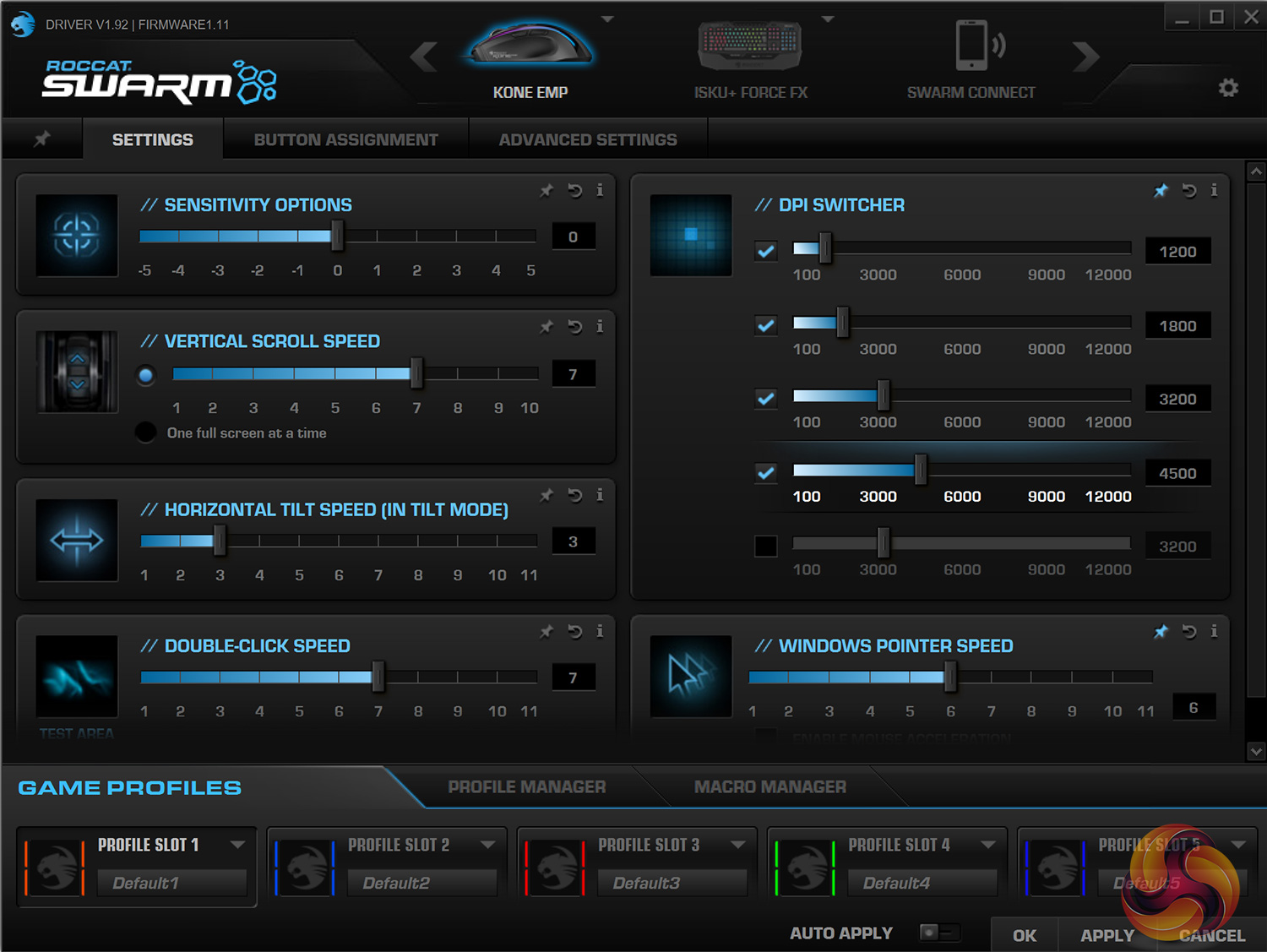 Starting with the scroll wheel, Roccat have designed it so it can be pushed to the left and to the right, and you can map any function you wish to these actions. Personally, I found it best for adjusting music volume, although obviously you may prefer to use it for something else. Either way, it is a nifty way of getting more functionality onto the mouse without having the clutter of extra buttons.