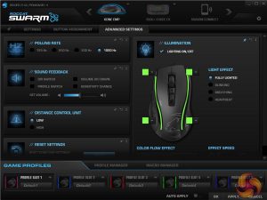 On the last page, we find some extra settings, including polling rate adjustments, but most importantly it is here that users can tinker with the RGB lighting.