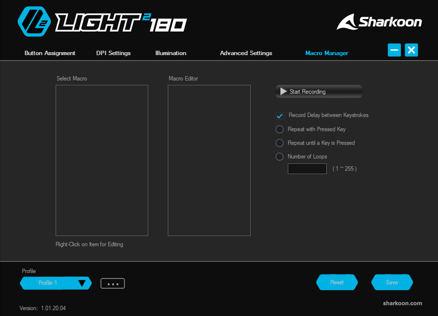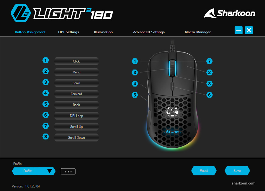 - Button Assignment lets you re-map the 6 different buttons on the mouse, with two extra options to remap scroll up and scroll down – for a total of 8 remappable functions.