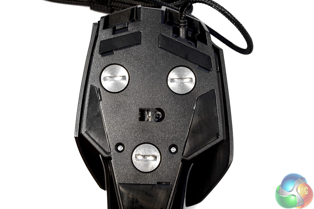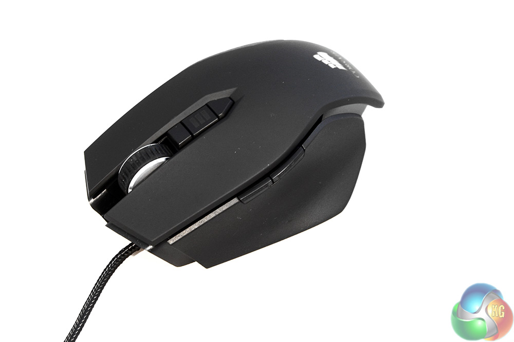 At the front there are the usual two buttons, along with a silver rimmed scroll wheel that makes a nice focal point, visually. It features no side switching, but does have the usual middle mouse click and a rubber wheel for extra grip. It turns quite slowly, but this gives greater control and perhaps more importantly – it does so absolutely silently.