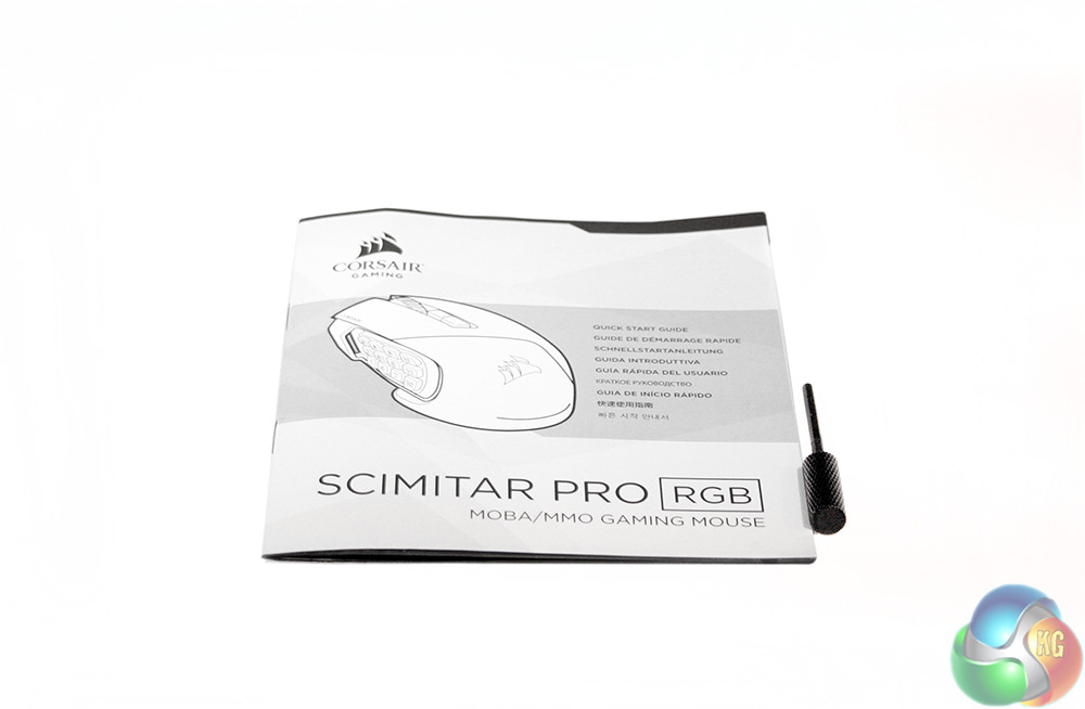 Unless you are swapping out weights, you do not need a lot of accessories with a mouse and the Scimitar Pro is a great embodiment of that. It has a set up manual and a screwdriver, used only for adjusting the placement of the side-panel buttons.