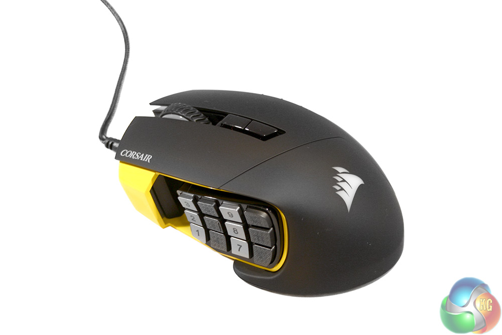 Whether you are a fan of big, multi-button mice or not, the Corsair Scimitar is a great looking mouse. It has sleek lines, a unique look and once again, I love the yellow accenting with the black. It is such a fun change of pace from the usual gaming colour schemes that it is worth noting right off of the bat.