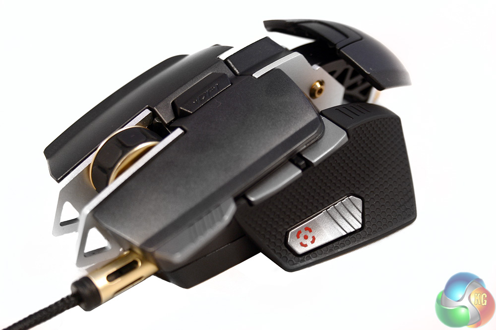 At the back, hidden under the palm wrist is a small brass thumb screw. This raises and lowers the rear portion of the mouse, to switch between claw and palm gaming position. It surprisingly works really well and does not feel gimmicky in the slightest.