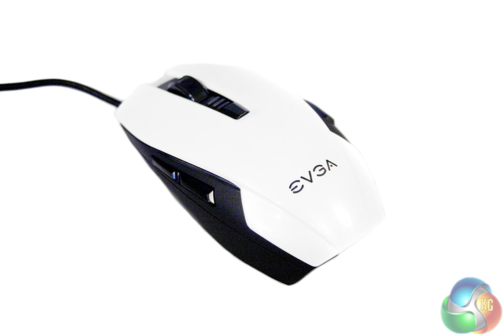 The EVGA Torq X5 is quite an eye-catching mouse, if for no other reason than it has a bright white paint job. It features a sparkly pearlescent white top coat. This contrasts with the matt black sides and glossy black buttons used throughout the design.