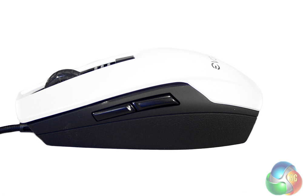 The sides of this ambidextrous mouse are identical, with the same reptile skin plastic grips and twin buttons for added function. They are however in a press, rather than a rock position, so you will need to lift off your thumb or forefinger to press them.