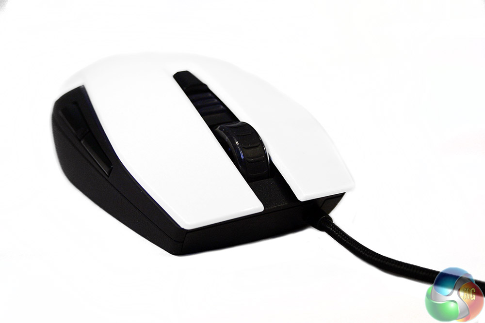 The front is notable for the fact that the developers chose to make the mouse cable not branch off from the centre of the mouse and instead, it does so from the left hand side. Also at this end of the rodent are the twin left and right-click buttons, which are built into the main body of the mouse.