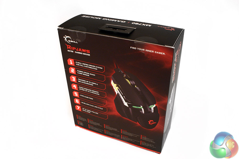 The packaging for the G.Skill MX780 is compact, but informative, giving you a great shot of the mouse itself on the front, as well as highlighting some of its more important features. RGB lighting being the technology focus point, it is no surprise that it features prominently.