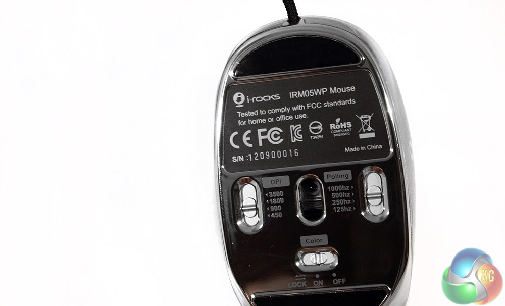 The underside hides the controls you often find up top with a gaming mouse, giving you options for polling rate and DPI, though with a reasonably modest 3500 as the maximum, chances are you'll be leaving them at the highest setting.